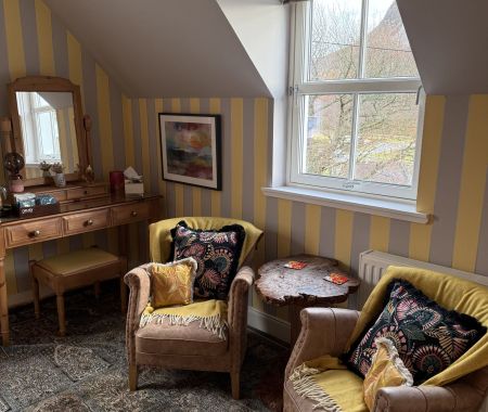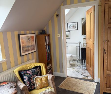 All furniture is hand crafted, as are the mattresses on the twin beds. This roomy twin also comes with tea & coffee making facilities and a well appointed luxury porcelain en-suite. We hope you can make yourself at home here and enjoy your stay at the Clachan Garden B&B.